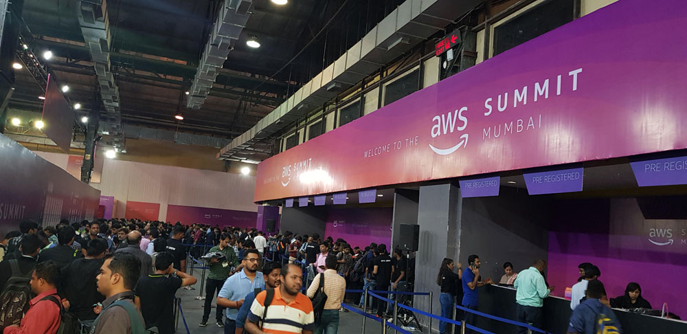 Year after year, techies, devops and newbies come together in the month of May to the Mumbai Exhibition Center (NESCO) to exchange and gather knowldege, product information, training and certifications from Amazon Web Services (AWS). Delegates to AWS Summit is increasing by 45% year on year, and is named as the “largest IT event in India”. This year online registrations crossed 15K for the Open summit. The event is across two days where the first is specifially for the partner network, and the second one is for general public.