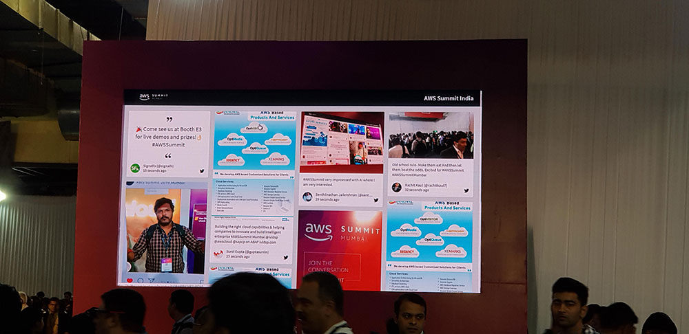 The twitter wall which shows tweets with #AWSSummit on a big screen, though been there for many previous events, was an all time big one and the tweeters were heavily inspired to increase the tweet count. On an average there was 400+ tweets every hour.