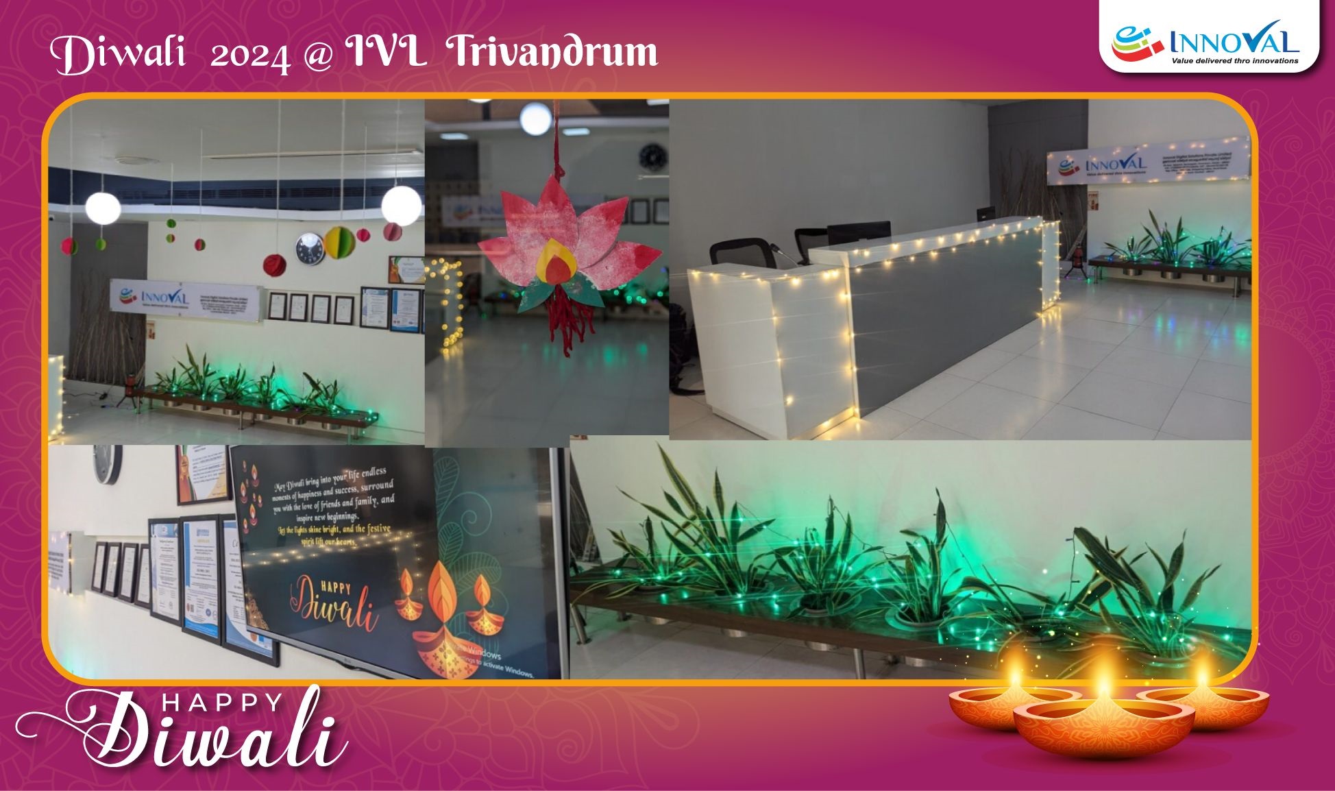 The Diwali celebrations brought a vibrant and joyful atmosphere to our workplace. Preparations began a week in advance, with IVLions coming together to decorate the office and participate in dance and cultural programs. The team created beautiful Diwali-themed handcrafted decorations.