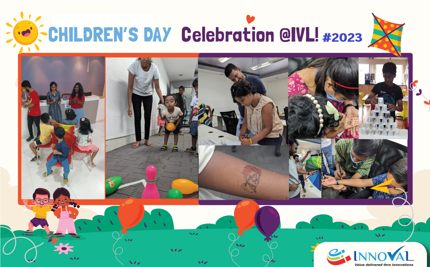 It was a day of giggles and twinkles at Innoval as the registration started by welcoming over 34 lil’ guests, with refreshments and glittering #tatoos of #fairies, #animes on tiny hands. The #photobooth was all buzzing with flashes of solo and family clicks with their #IVLion_parents. Glad that all age groups had their happy corners with stalls for #Paper_Craft and #Food_Counter where they prepared their favourite fruit and Veggie sandwiches which they relished. The dancing toes enjoyed new learnings for their dazzling #Dance_reels. Little brains enjoyed some #puzzles and #Fun_with_Math. Hurray moments for the tiny ones who enjoyed the tasks as part of #Passing_the_parcel and #Bowling off the colourful pins! Building the pyramids with paper glass was indeed a tough task but this got funny when the neighbouring tiny tots crashed it back! The younger ones enjoyed the goodies they won with the #Hoopla games. The teens with their tiny teams had a superb icebreaking with the #Treasure_Hunt by cracking clues and puzzles, creeping into meeting rooms and flipping off the blinds & curtains around, to win their treasure which they happily shared with all!