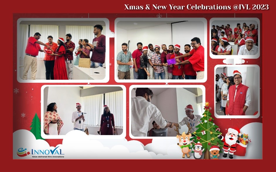 A colorful and good time of togetherness with the Christmas theme was set all around the office on 21 Dec 2023. The attire of Red and White added to the graceful theme of merry and welcome note for the New Year. We had a great time with X-mas events with solo numbers led by Varsha S and Gireesh G , X-Mas carol and a Funtastic Quiz followed. Special thanks to IVL’s Santa Claus who visited us from North Pole, accompanied by Santa’s buddies. The floor was filled with giggles and happiness when all exchanged gifts with their secret Santas remembering the funny tasks they enjoyed the last few days. The cakes and snacks winded up a week-long festive time and with all getting set to welcome the new year with hopes and dreams!